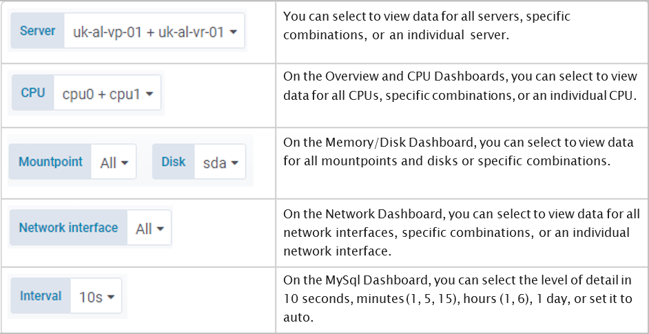 VidyoInsights has various options that enable you to select the data to view on the dashboards.