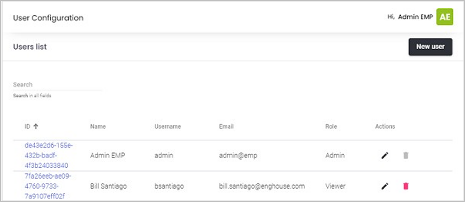 - To edit a user, click the user's edit icon in the Action column and change the information.