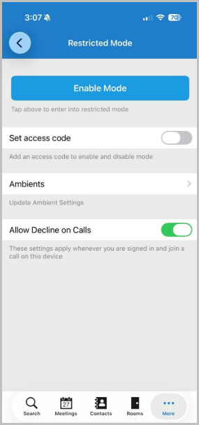 - The restricted mode automatically keeps the app logged in for extended periods beyond the day restriction regular VidyoConnect mobile endpoints enforce as a security requirement.